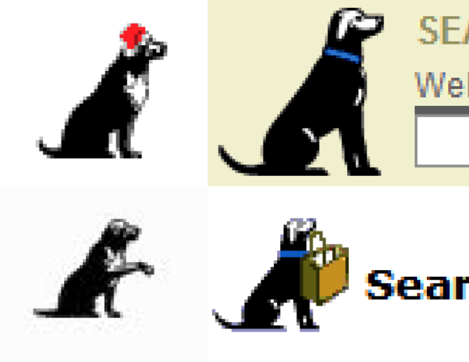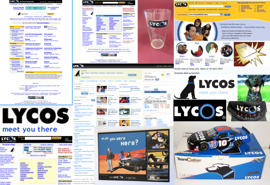 As you see these are screen captures of the old versions of the LYCOS website, and the dog was always there next to the search bar. It even had it’s own cute expressions, I especially like the one holding the paper bag.