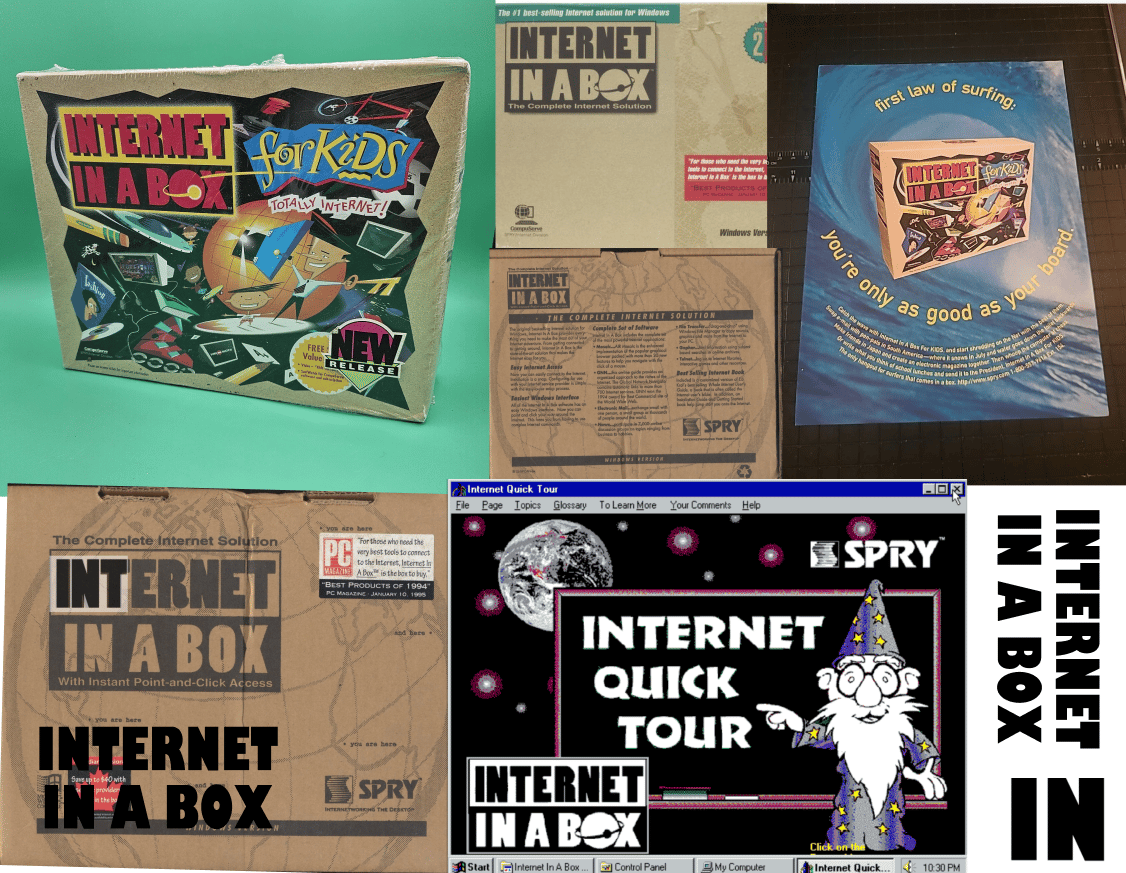 Internet in a Box, I actually don’t have any recollection of this. From the tad bits here and there it seems to be have been a CompuServe product. Technically, developed by SPRY, which was bought by CompuServe. If you look at this decade old article from Ars Technica on the unboxing of such a time capsule, this all becomes an inception of internet history. What’s interesting for me is the Internet in a Box kit had The Whole Internet User’s Guide Book, which circles back to Dialup’s only t-shirt. Hehe. But yes, I’m working on identifying the font, I’ve come close to the type of family though I’m not satisfied, yet.